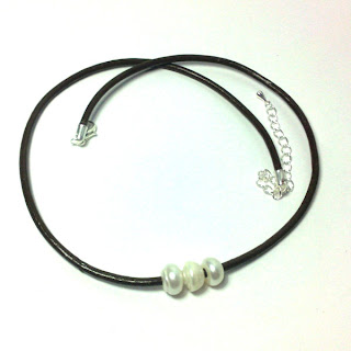 Y volví a las andadas... Collares largos con plumas de ante y cuentas de cristal.