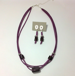 Collar lila realizado en ante, con cuentas de cristal y zamak.