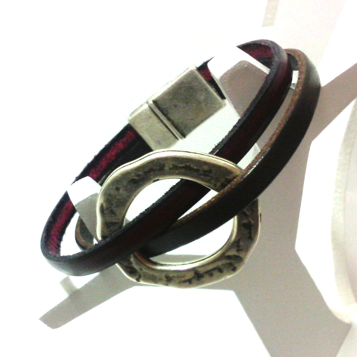 Pulsera de dos tiras de cuero plano y anilla de zamak